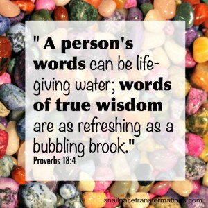 A person’s words can be life-giving water; words of true wisdome are as refreshing as a bubbling brook (proverbs 184)