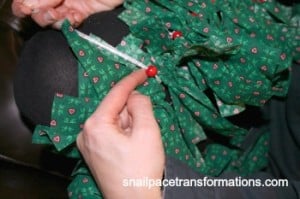 putting beads on wreath
