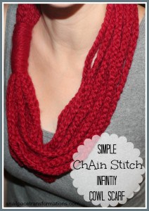 Red chain stitch infinity cowl scarf